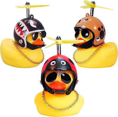 wonuu Duck Car Dashboard Decorations 3pack Rubber Duck for Car Car Accessories Rubber Duck with Thruster Helmet Sunglasses, and Gold Chain Cool Ornaments